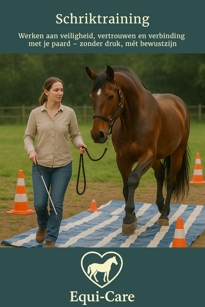 Bij Equi-Care zien we schriktraining niet als het doven van angst, maar als een uitnodiging tot vertrouwen. Niet: “Wees niet bang”, maar: “Je mag bang zijn – en ik blijf bij je.” Die benadering verandert alles. Want een paard dat zich gehoord voelt in zijn angst, ontwikkelt échte moed. Niet omdat hij ‘moet doorkomen’, maar omdat hij zich gedragen weet in kwetsbare momenten.
