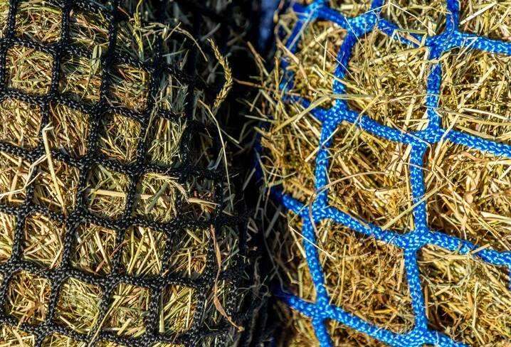 Als jouw paard gevoelig is voor verstikking door hooi, gebruik dan een hooinet met kleinere gaten. Dit stimuleert je paard om kleinere hoeveelheden tegelijk te eten en vertraagt het eetproces. Ook het voeren van natgemaakt hooi kan helpen: nat hooi is zwaarder en moeilijker snel naar binnen te werken, waardoor je paard automatisch langzamer eet.