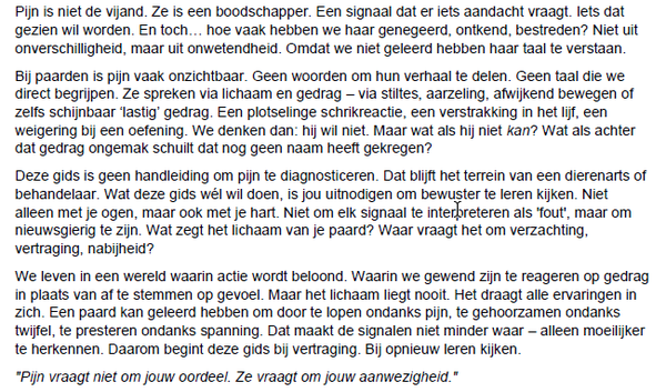 - Hoe pijn zich toont in gedrag en lichaamstaal.