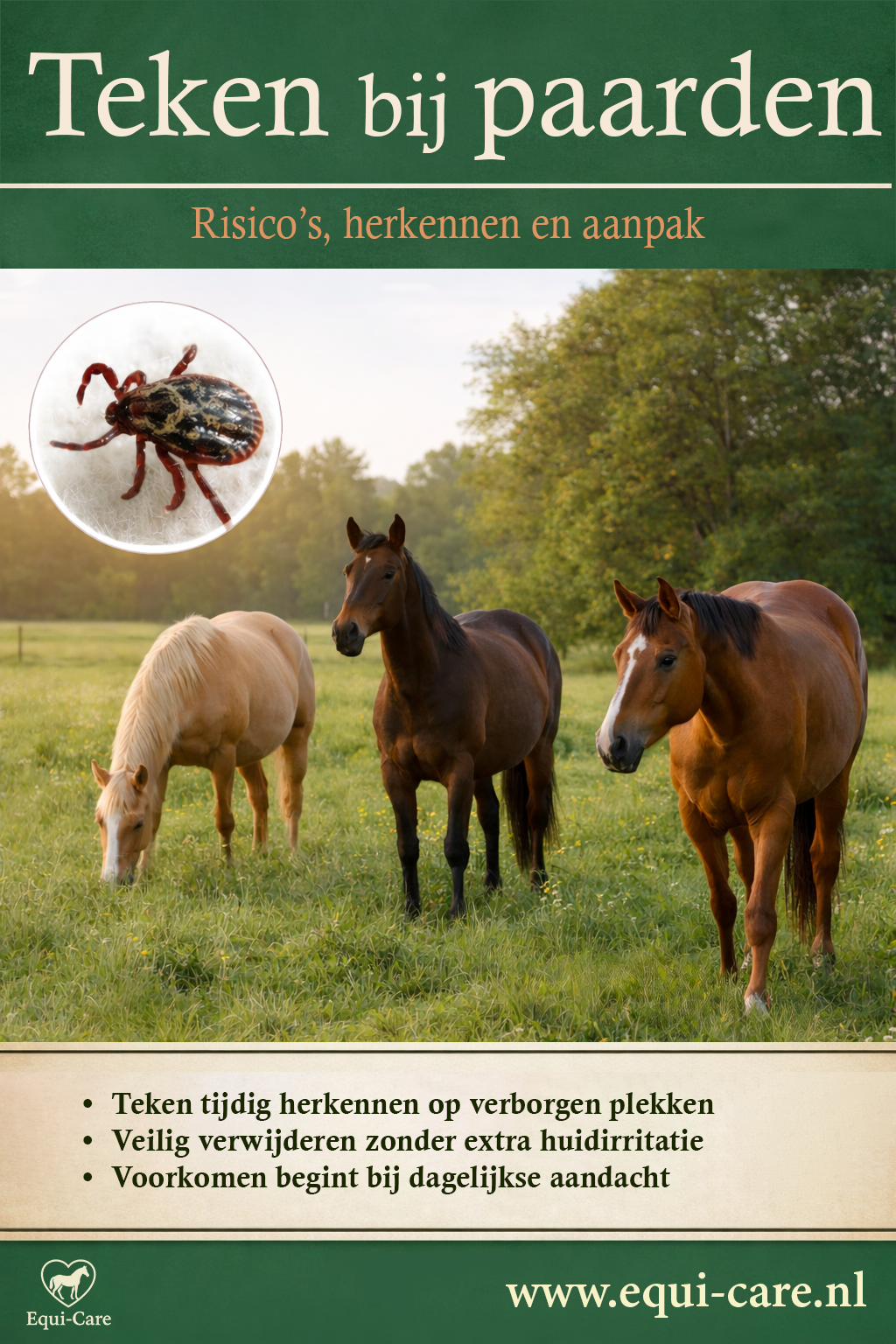 Teken bij paarden worden vaak pas opgemerkt wanneer ze al vastzitten. Toch begint het voorkomen van problemen juist bij het tijdig herkennen en begrijpen van wat er gebeurt. In deze gids leer je hoe je teken bij je paard opspoort, veilig verwijdert en beter inschat wanneer een reactie aandacht vraagt.