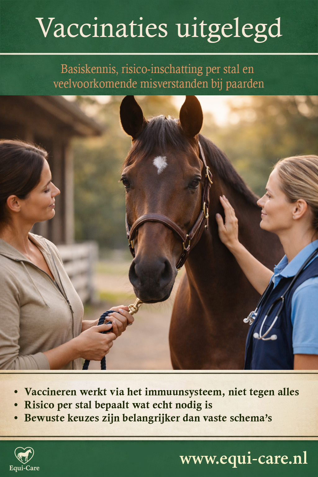 Deze gids geeft je een helder en praktisch overzicht van vaccinaties bij paarden, inclusief risico-inschatting per stal en duidelijke uitleg zonder onnodige complexiteit .